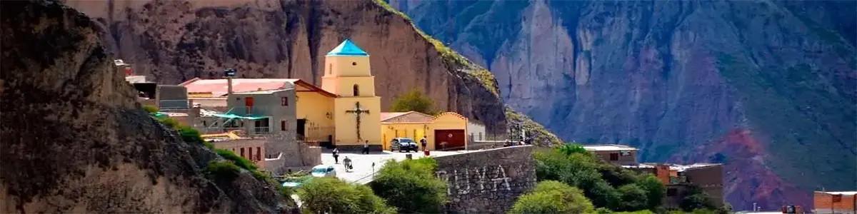 En el viaje a IRUYA se pasa por los principales pueblos de la Quebrada de Humahuaca. Se transita por caminos sinuosos apreciando paisajes muy bellos pasando por el Abra del Cóndor, enormes farallones surcados el río Colanzulí. Manadas de llamas y ovejas nos irán acompañando hasta llegar al majestuoso pueblo de Iruya que aparenta una pintura de pequeñas casas de adobe y paja encajado en la montaña.