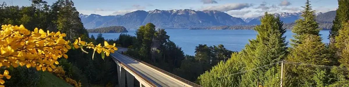 Puente del arroyo Angostura, union de los Lagos Moreno con el Nahuel Huapi, y mas adelante: Bahia Lopez, al pie del cerro homonimo y el Punto Panoramico con vistas espectaculares.